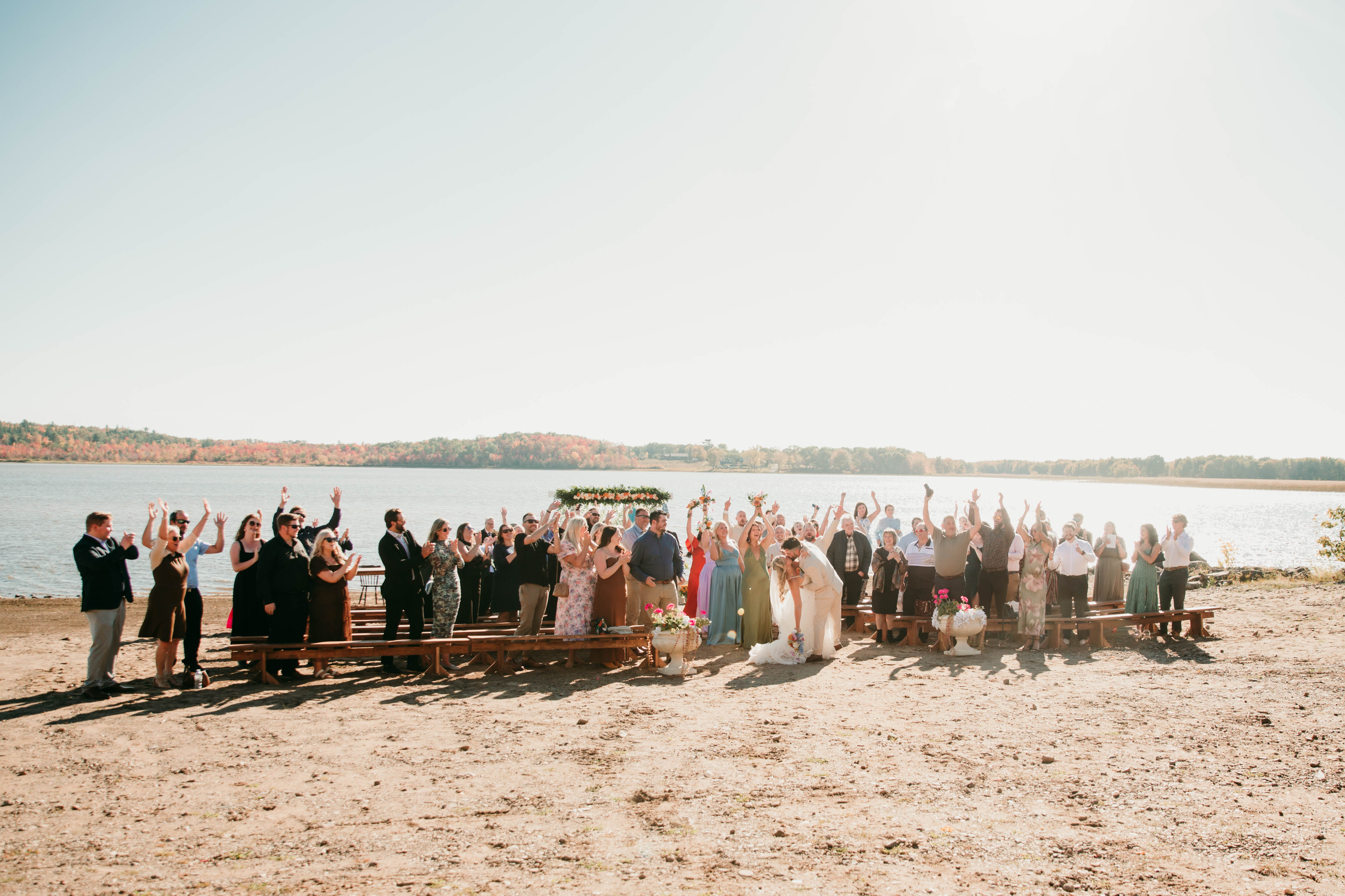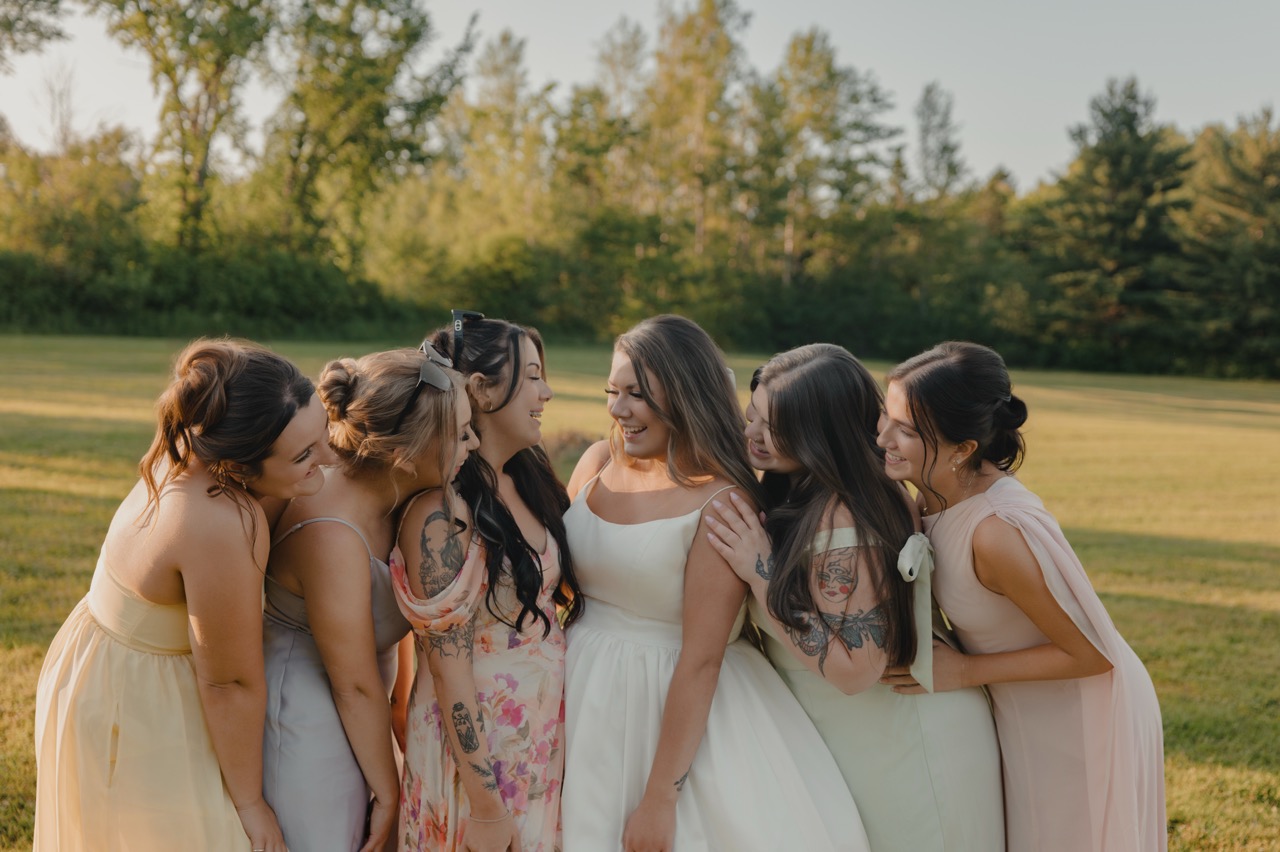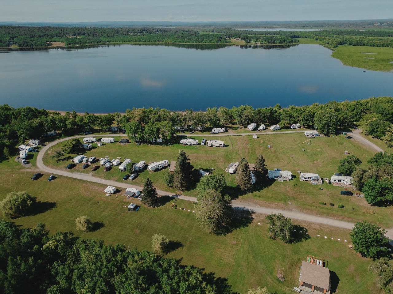 Our venue offers a variety of stunning landscapes, all exclusively yours when you book The Meadows. From the expansive event field that hosts our marquee tent and the stage ideal for live entertainment, to the lakeside beach perfect for shoreline ceremonies or evening bonfires, the property provides endless possibilities. Guests can enjoy the charming gazebo for cocktail hour or intimate outdoor dining, and our beautiful marquee tent, which seats up to 105 guests at our handmade harvest tables. Your booking includes 15 custom harvest tables, 30 matching benches, our checkerboard dance floor, and elegant ceiling drapery and string lights that adds a warm, refined touch to the tent. Guests also gain access to the campground side of the property and may book tenting lots for accommodations, with optional 15–30 amp electrical sites available for an additional fee paid by either the couple or individual guests.