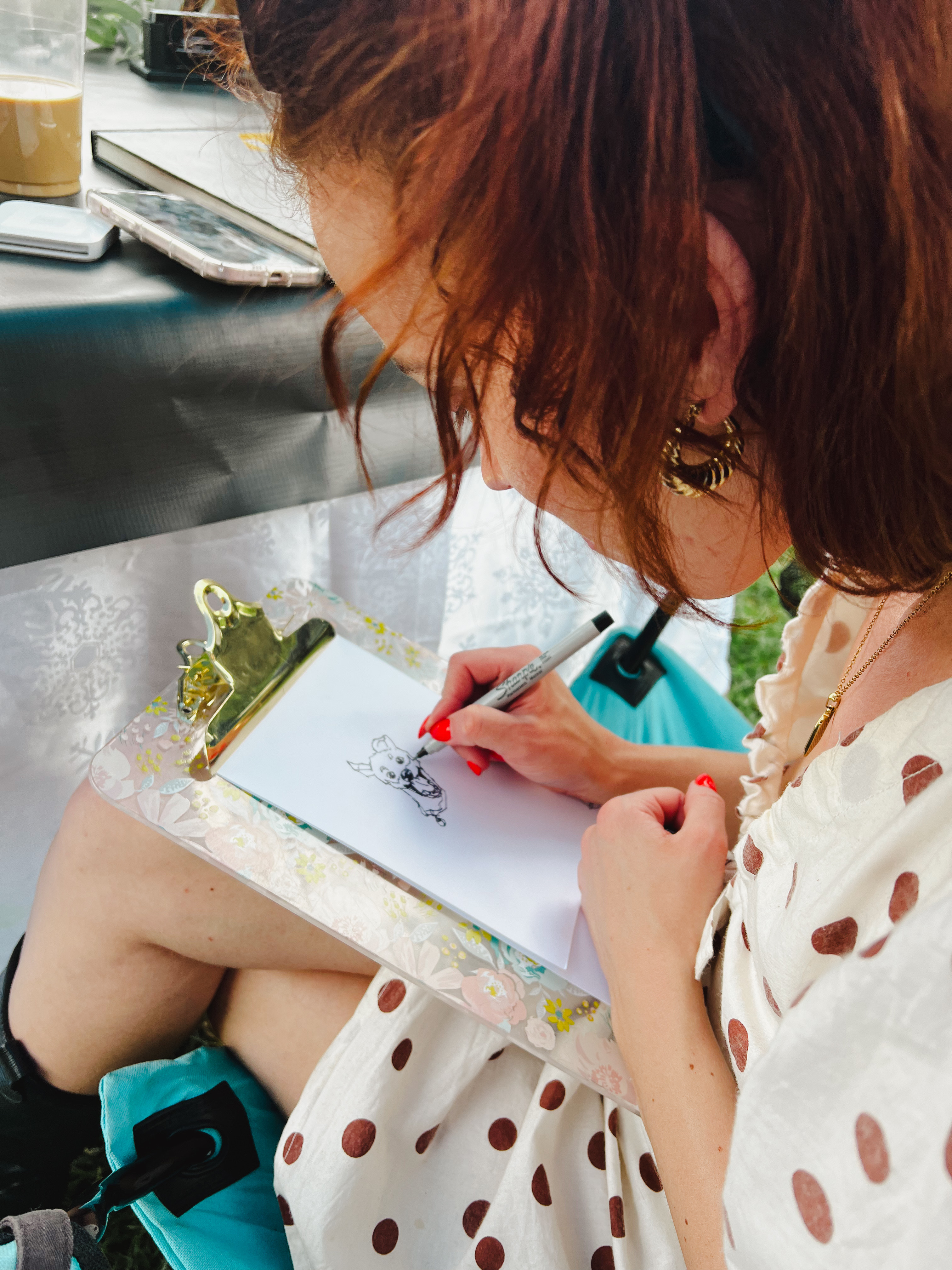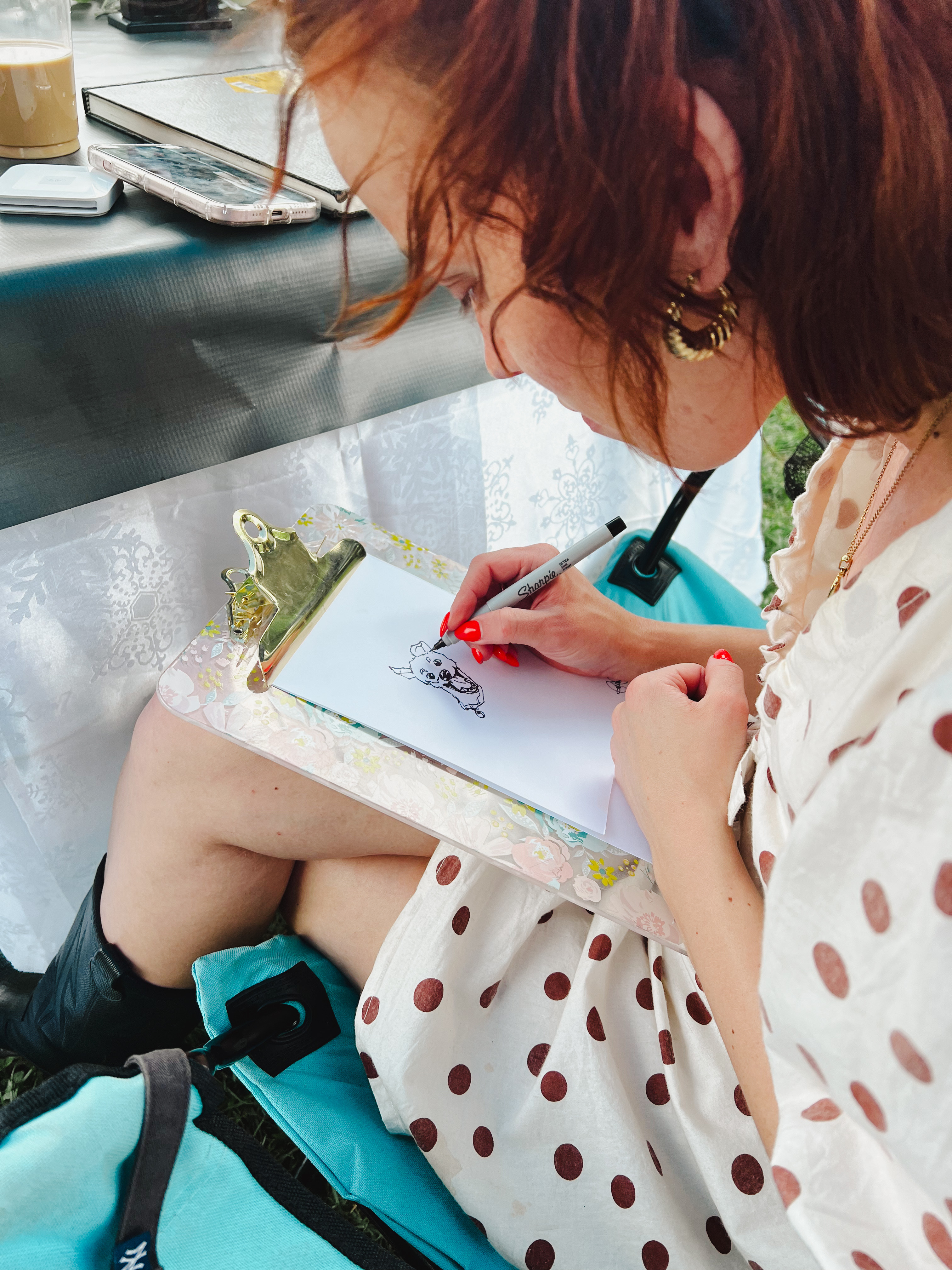 Emily Chase is an artist with a passion for creating connection through illustration and live painting. Known for her warm presence and ability to put guests at ease while sketching, she brings a blend of creativity and authenticity to every event. Emily loves transforming special moments into keepsake artworks—whether through lively caricatures or expressive painted scenes—and she takes pride in offering guests a unique experience they can take home and treasure.